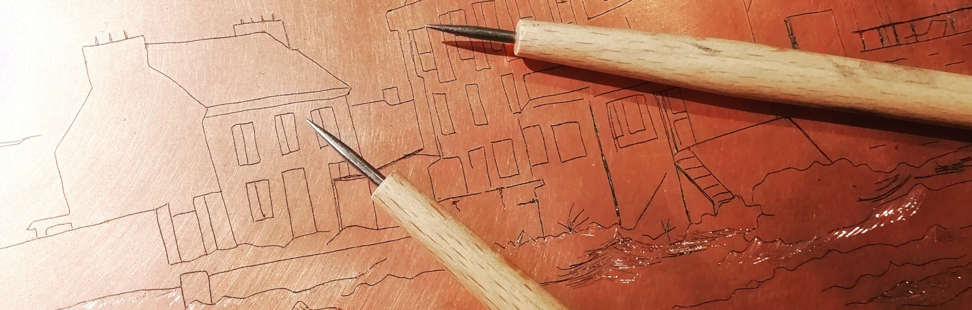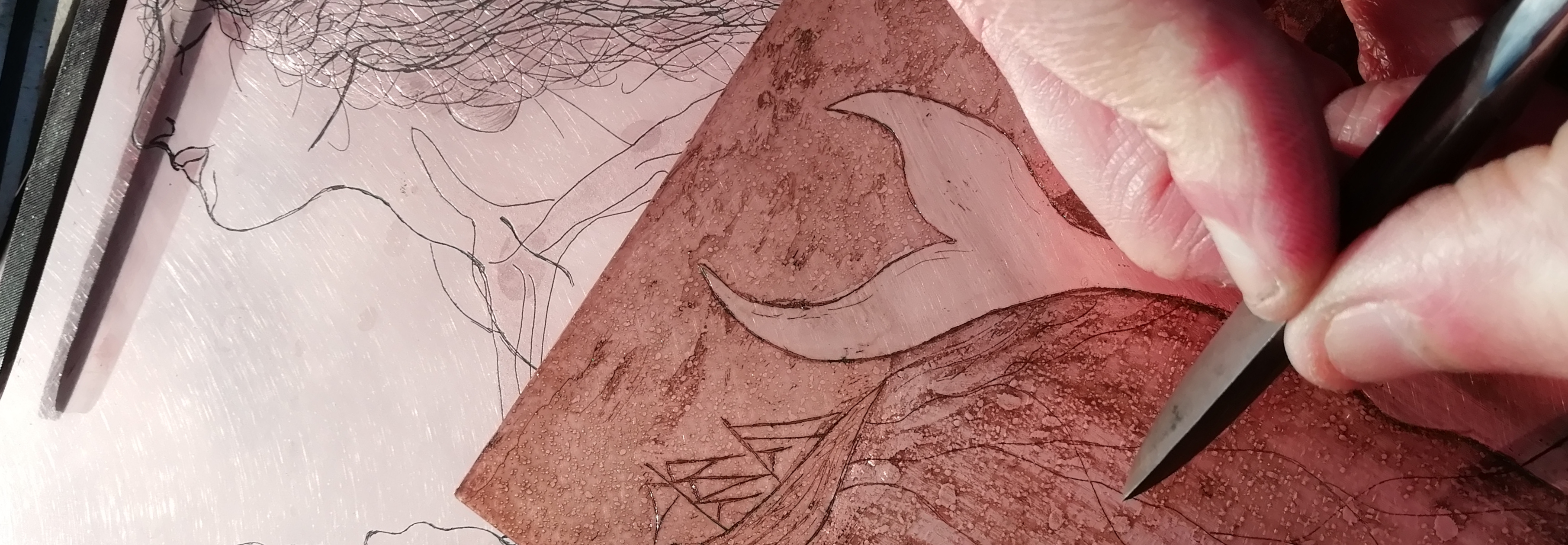 gravure en maniant gouges et pointes pour la première fois. Ils et