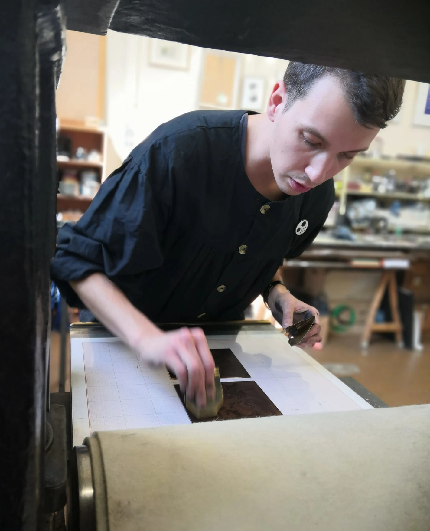 Le bureau de l’association est fièrement porté par Lucile, Caro et Dom, qui pratiquent également la pointe sèche et la gouge à leurs heures perdues.