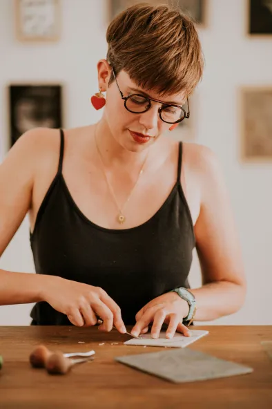 Tombée dans la gravure au détour d’une rue toulousaine, je me suis formée à l’atelier de la main gauche pendant une dizaine d’années, auprès de Bilitis Farreny et Ekin Kirimkan.